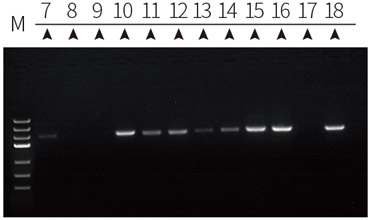 ![]() | M:MakerⅢ(ZOMANBIO) 7-8:T公司酶直接鑒定結果 9:T公司酶陰性對照 10:T公司酶陽性對照 11-12:B公司鑒定試劑盒鑒定結果 13:B公司鑒定試劑盒陰性對照 14:B公司鑒定試劑盒陽性對照 15-16:本公司ZC221A鑒定結果 17:本公司ZC221A陰性對照 18:本公司ZC221A陽性對照 |