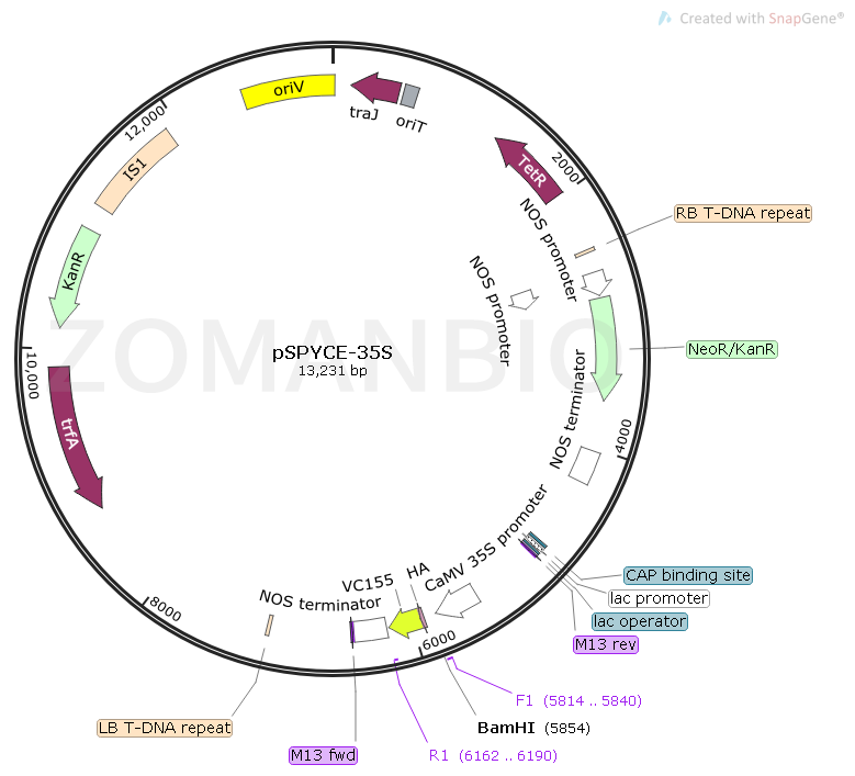 質粒序列請下載:ZK2351pSPYCE-35S植物雙分子熒光質粒.txt